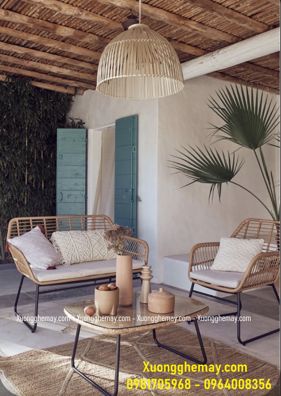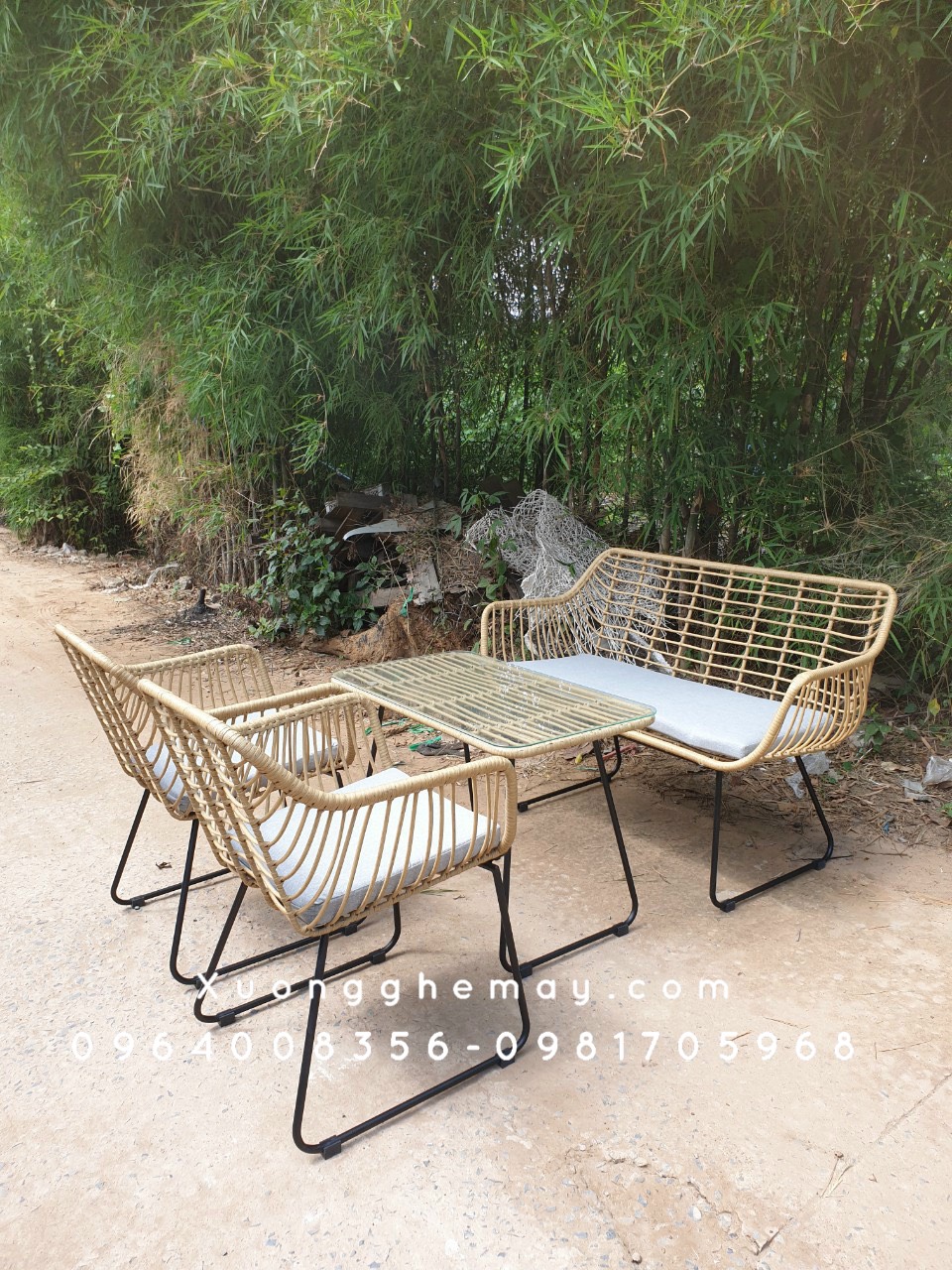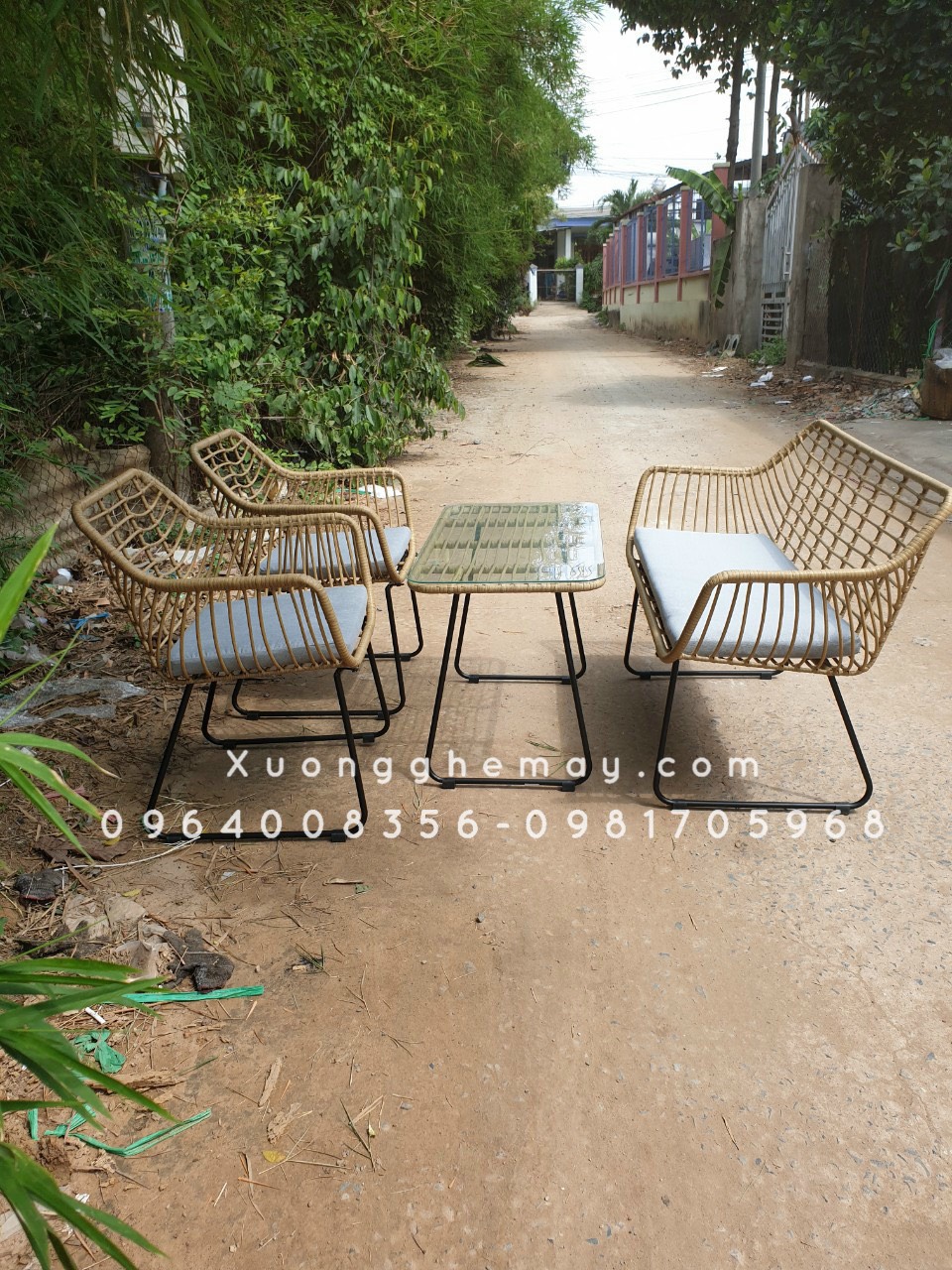 - Mô tả: Bộ BÀN GHẾ NHỰA GIẢ MÂY với khung sắt kết hợp sợi nhựa giả mây chất lượng cao, bền đẹp chắc chắn, sang trọng cực kì phù hợp cho không gian ngoài trời: sân vườn, hiên nhà, bancon hay tầng thượng,các quán cafe sân vườn,... Liên hệ ngay để được tư vấn thêm về sản phẩm Hotline: 0964008356 - 0981705968 (zalo/viber) Địa chỉ : 1S Đinh Bộ Lĩnh, P.15, Q.Bình Thạnh, HCM Website: www.xuongghemay.com