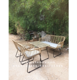 Bộ BÀN GHẾ NHỰA GIẢ MÂY với khung sắt kết hợp sợi nhựa giả mây chất lượng cao, bền đẹp chắc chắn, sang trọng cực kì phù hợp cho không gian ngoài trời: sân vườn, hiên nhà, bancon hay tầng thượng,các quán cafe sân vườn,...