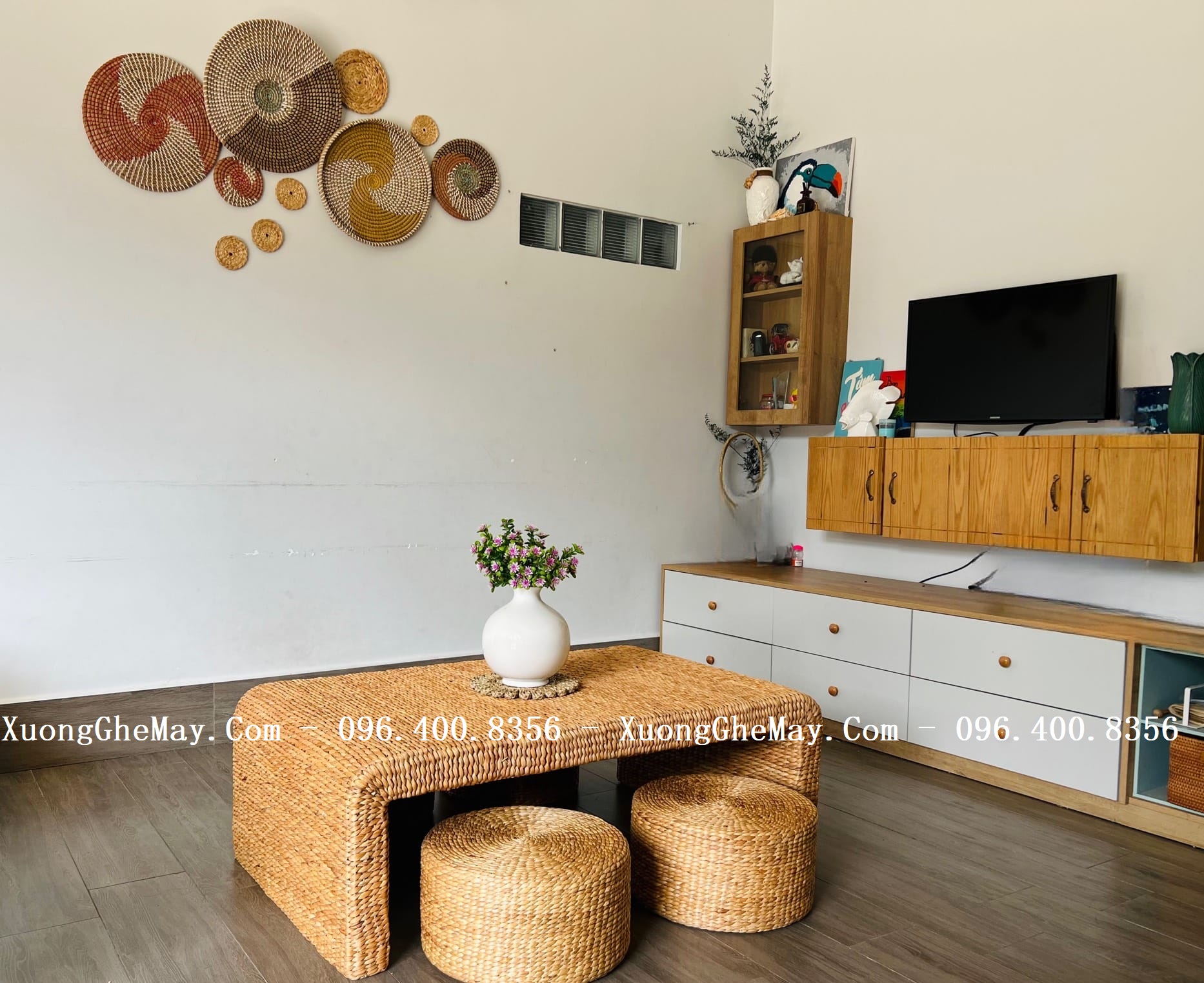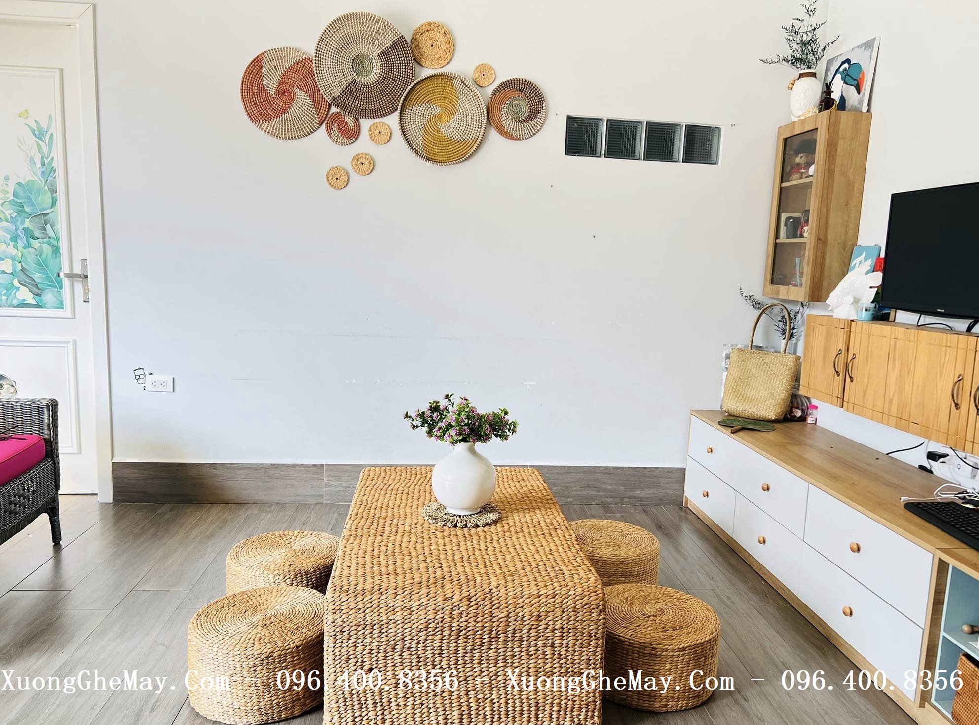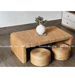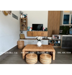 Trọn vẹn vẻ đẹp tự nhiên với bàn ghế trà đạo bằng lục bình đan LV2023