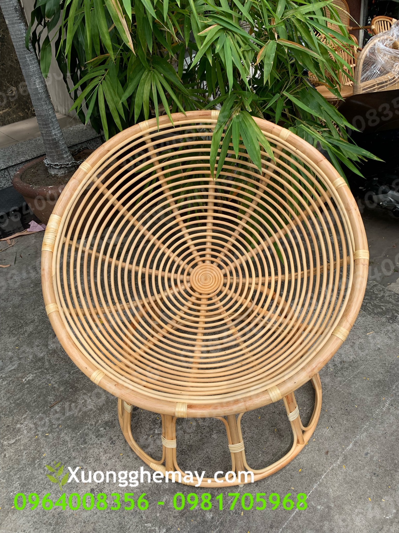 - Chất liệu: đảm bảo hàng loại 1, ghế papasan được làm thủ công từ 100% mây tự nhiên với những vòng mây được quấn sát nhau tạo nên sự chắc chắn cho người ngồi.