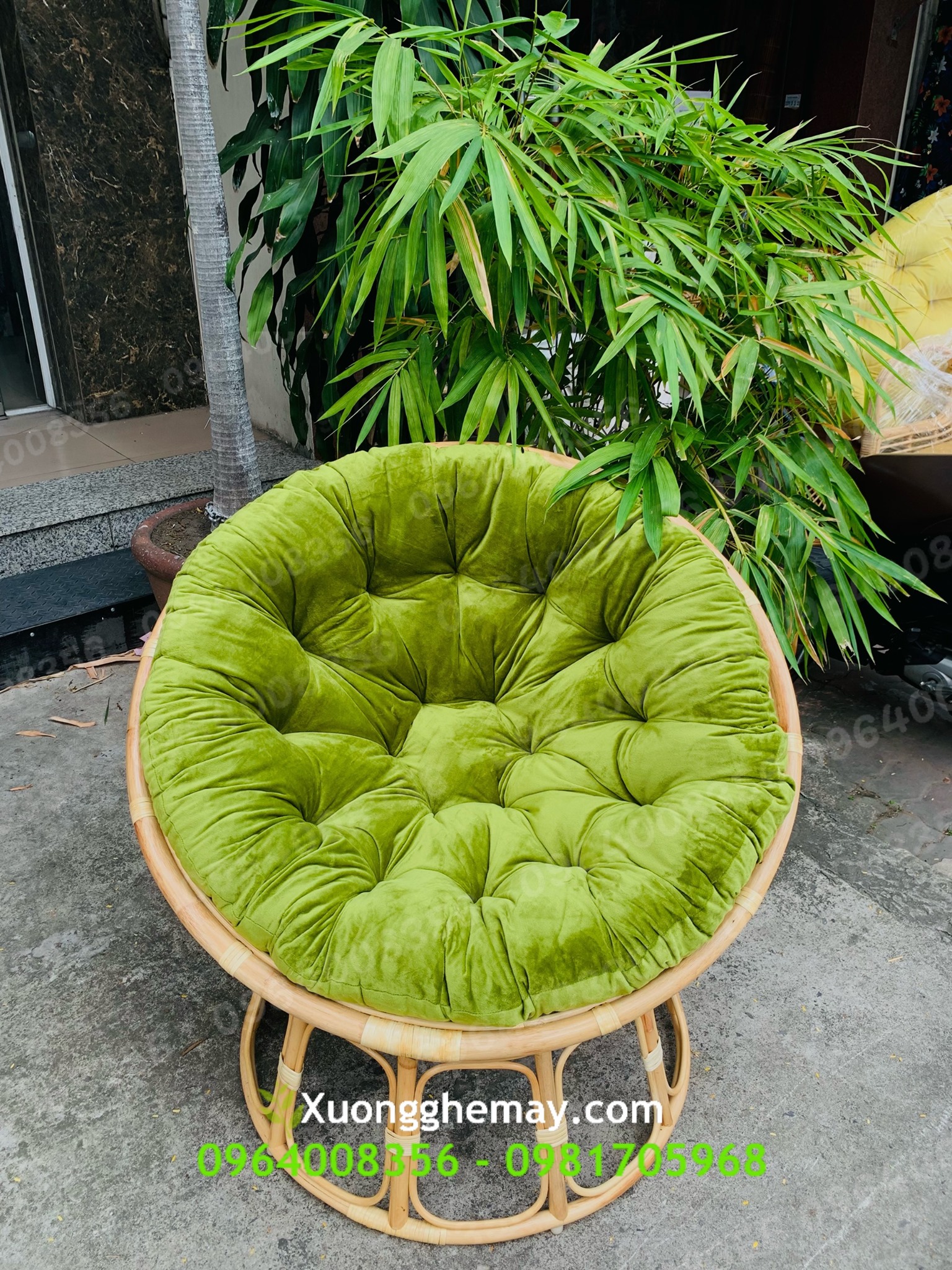 - Nệm ngồi: Đặc trưng của ghế papasan là phần đệm cao cấp với lõi là bồn gòn loại một, được nhấn múi đẹp mắt