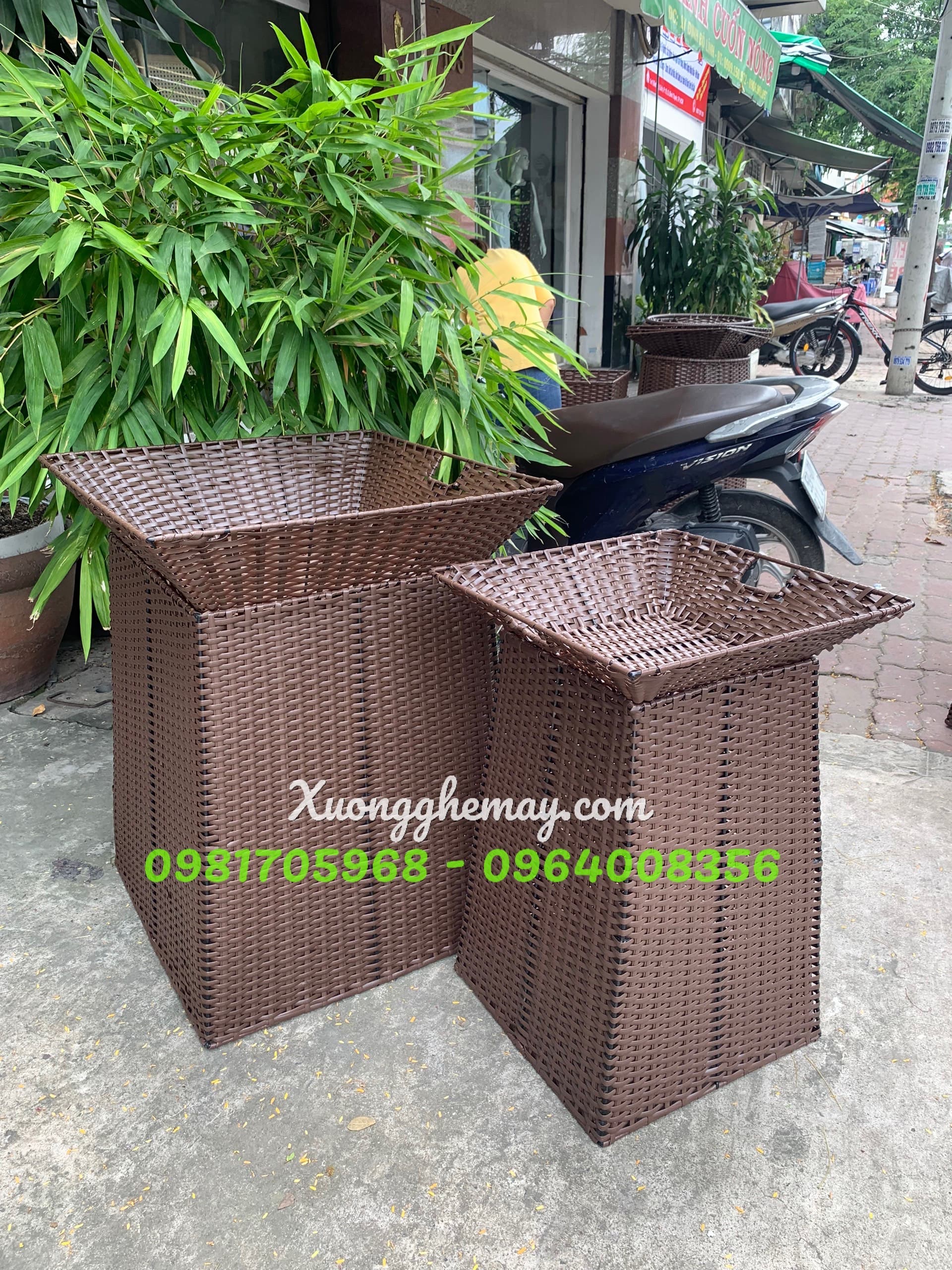 - Mô tả: Bộ sọt khay trưng bày trái cây dáng vuông , Sọt trưng bày hoa quả, sọt trưng bày trái cây, giỏ trưng bày hoa quả, khay đựng rau củ, hoa quả, bánh kẹo, hàng khô… bằng NHỰA GIẢ MÂY cho các cửa hàng trái cây nhập khẩu, siêu thị.