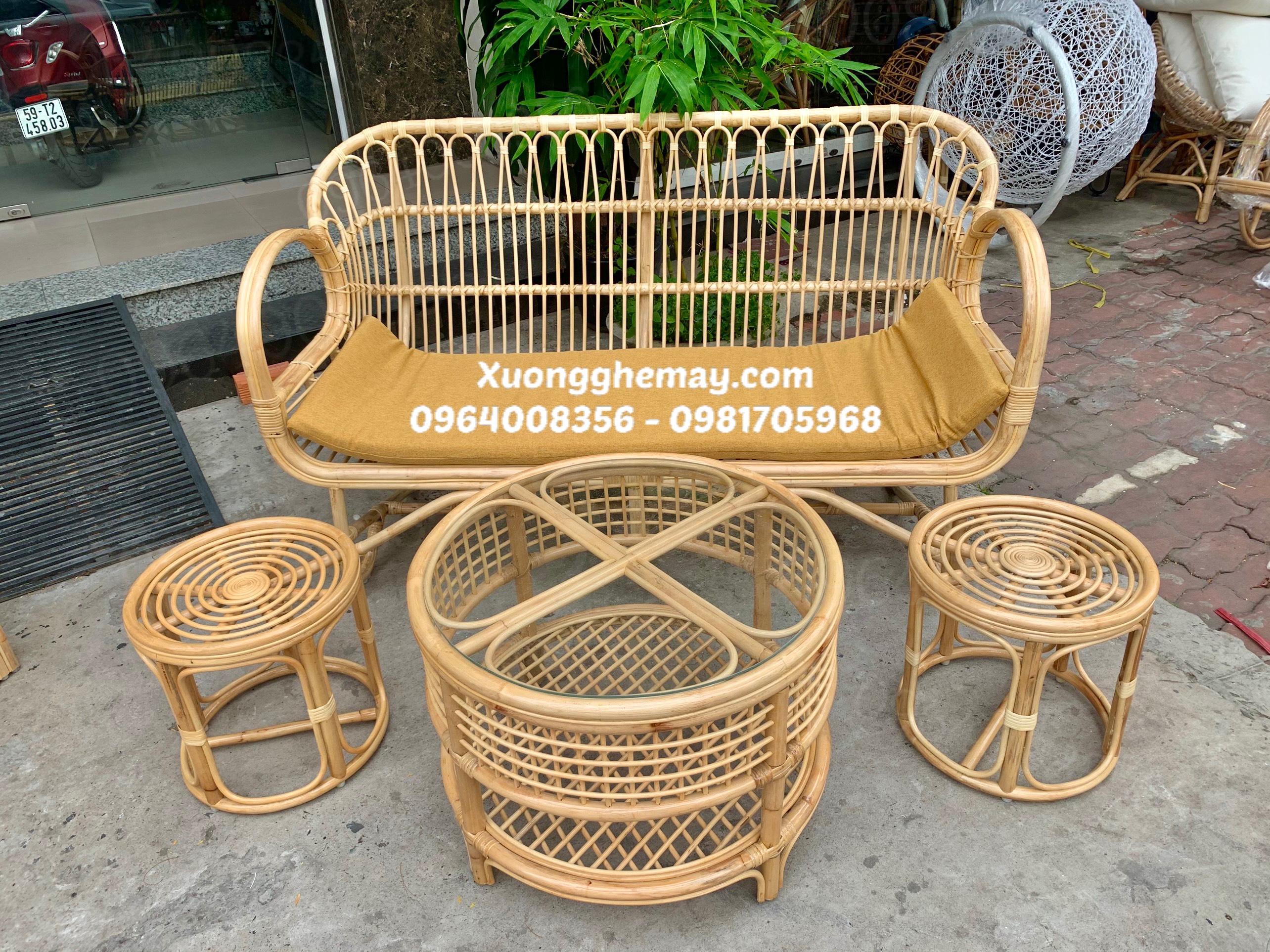 - Mô tả: Bàn ghế mây tự nhiên gồm một băng ghế sofa 1m6 và hai ghế sofa mây đơn và bàn mây .Với những song mây uốn lượn tạo kiểu, chắc chắn, bền lâu cho khách yêu. Với đa dạng kiểu dáng dễ dàng phù hợp mọi không gian từ gia đình, quán cafe,, ghế thư giãn homestay, ghế cafe quán cafe, ghế sofa khách sạn, resort...